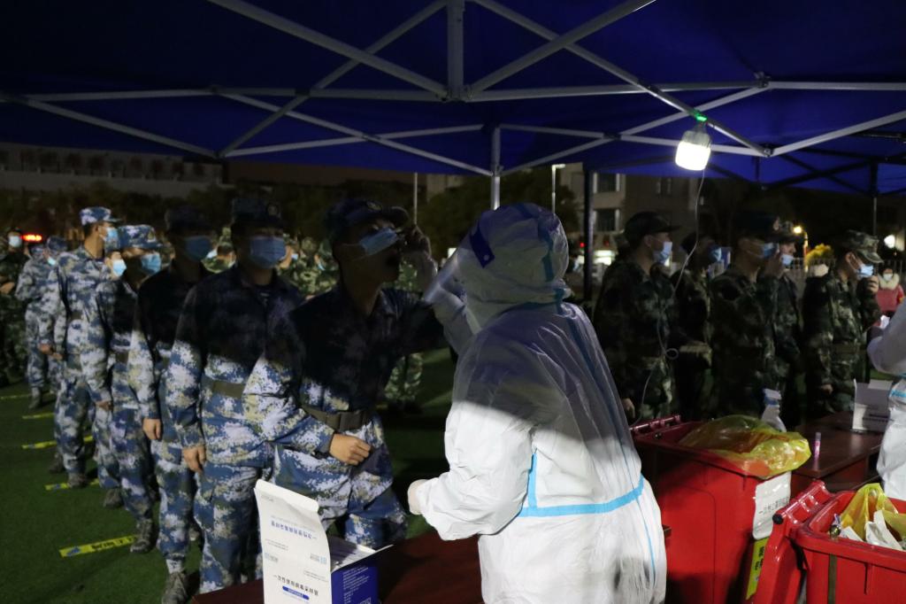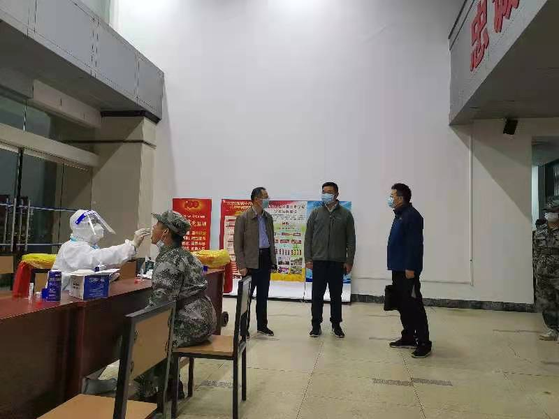 陆伟锋详细查看了彭桥校区采样点场地布置、检测流程、人员配备、采样能力、组织保障、安全保障、消杀安排等情况,查看了防控措施落实、现场秩序维护情况,全程指导校区核酸检测工作的开展。(文/赵冬梅,图/廖章一)