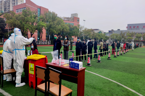 根据属地疫情防控工作统一要求,彭桥校区于3月17日至3月19日组织辖区内全体人员开展了第一轮、第二轮全员核酸检测工作。检测对象包括彭桥校区教职工、学生、校内居民住户、企业员工、从业人员等。