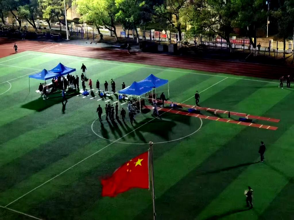 校区在篮球场和田径场分别设立两个检测点,实行学生和其他人员分区域检测,检测区域分别设置入口和出口,在出入口设置专职安保人员负责值守和出入引导,确保进出人员不交叉。
