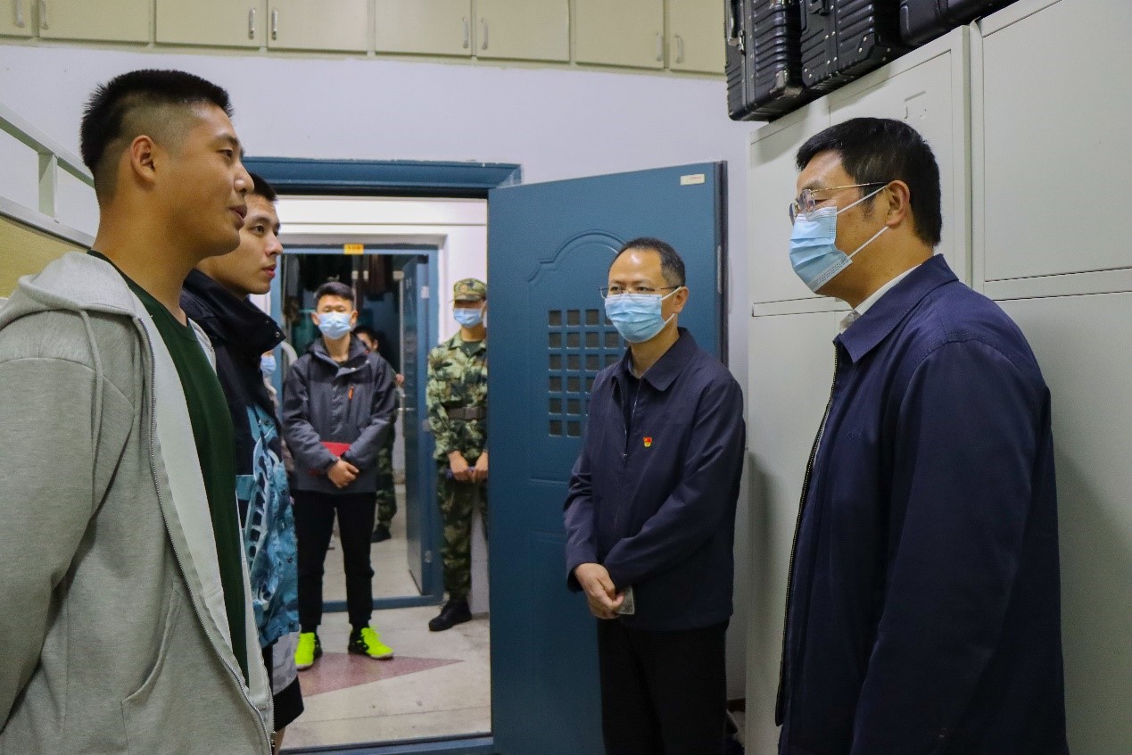 4月11日,副校长陆伟锋在彭桥校区检查疫情防控工作,实地检查了园区企业疫情防控工作落实情况、学生宿舍卫生状况及食堂供餐管理情况,到宿舍看望慰问了学生,仔细询问同学们疫情期间线上学习和生活情况,并要求同学们疫情期间做好个人防护和坚持线上学习。